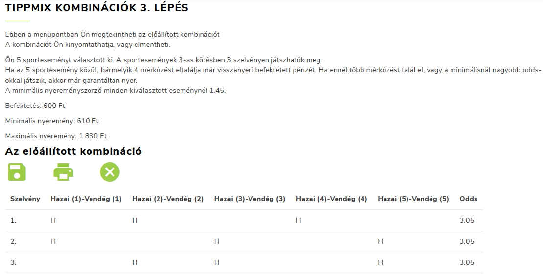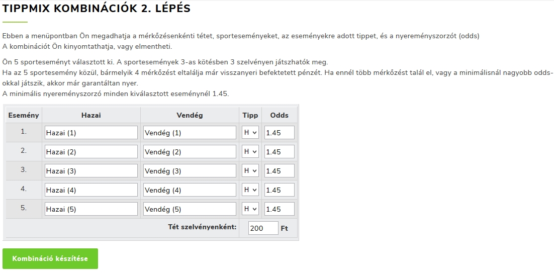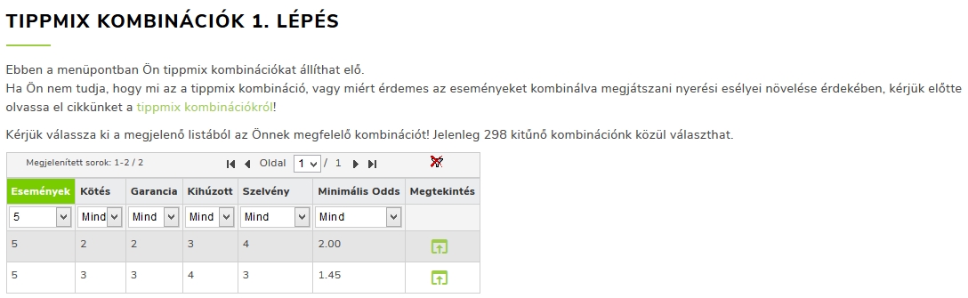 Most nézzük a honlapunkon előállítható tippmix kombinációkat.